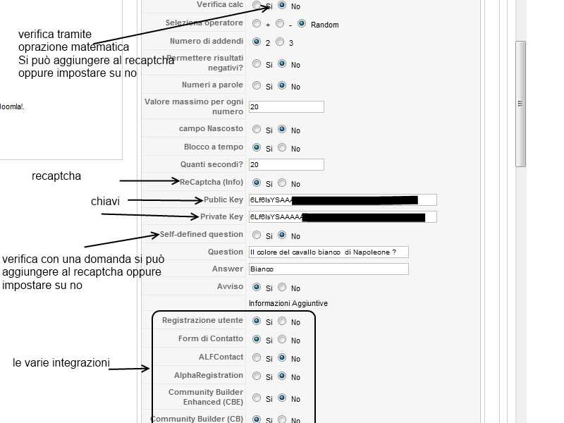 Questo plugin inserirà fino a tre tipi di verifica con integrazione in vari componenti joomla tra questi Cb 1.4 e 1.7 e Kunena quindi anche nella pagina di registrazione.